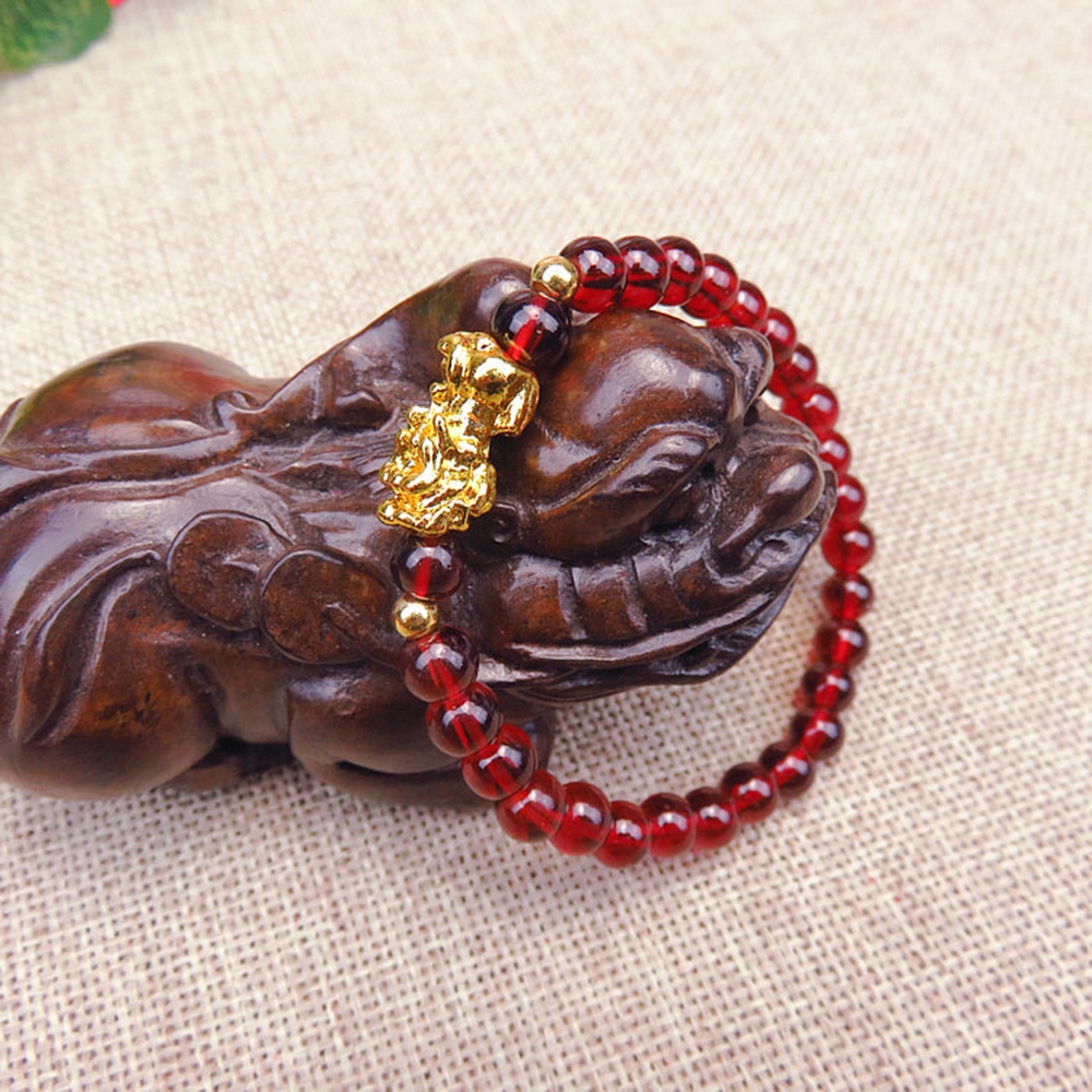 Product description 100% brand new and high quality Applicable: General Material: Alloy (plated gold), imitation garnet Size: brave troops 1.6cm long, bead diameter about 0.6cm Single lap circumference: 17.5cm Color: as the picture shows Packing: OPP bag Products include:1 PCS