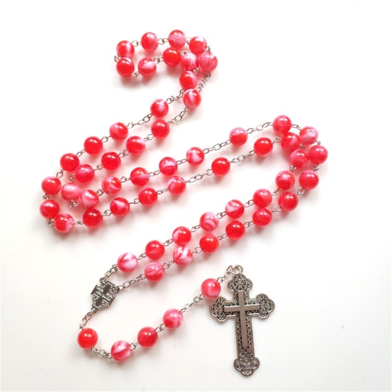 Giới thiệu Vòng Tay Chuỗi Hạt Mặt Thánh Giá Chất Liệu Acrylic Màu Đỏ Phong Cách Công Giáo Cho Nữ