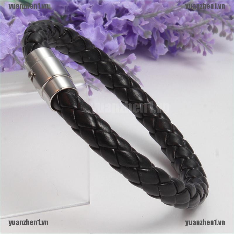 Giới thiệu Vòng Tay Da Màu Đen Khóa Nam Châm Bằng Thép Không Gỉ YUANZHEN1