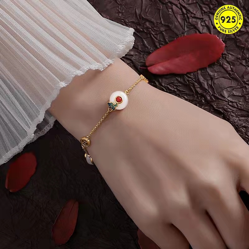 Giới thiệu Vòng tay đá ngọc bích màu trắng xanh lam phong cách hoàng gia Trung Hoa cổ điển cho nữ