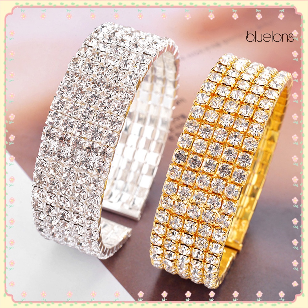 Sự chỉ rõ Chiếc vòng tay này có 5 hàng kim cương giả lấp lánh . Nó là một chiếc vòng kết thúc mở để bạn có thể xỏ vào và tháo ra một cách dễ dàng . Món quà hoàn hảo cho chính bạn. gia đình hoặc bạn bè .