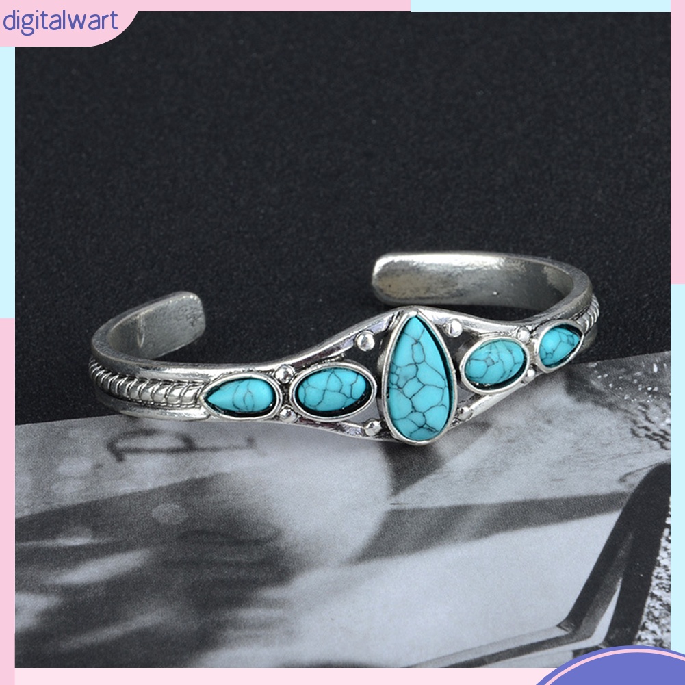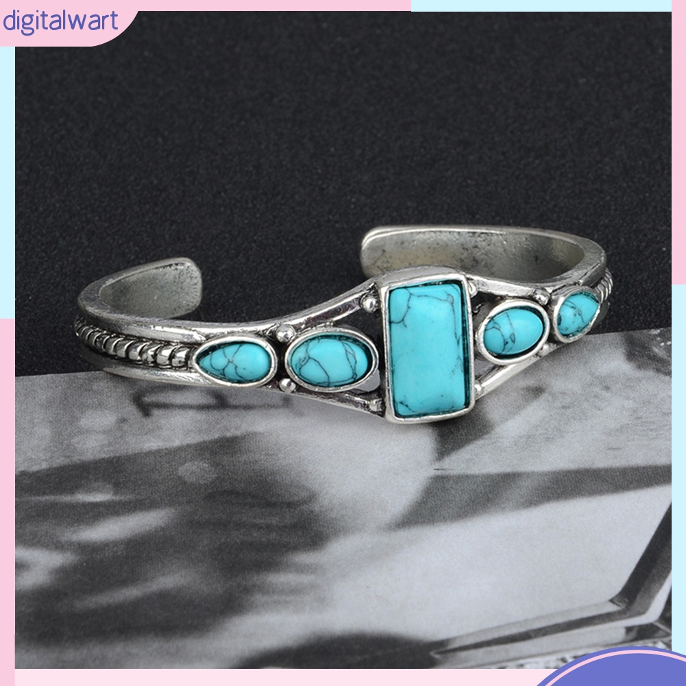 Features: Opening Bangle, Adjustable, Faux Turquoise Inlaid, Bohemia Style