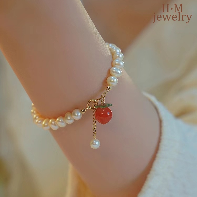 Giới thiệu Vòng Tay Đính Hạt Ngọc Trai Mã Não Đỏ Phong Cách Mori Thời Trang Mới 2022