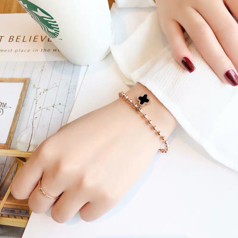 Giới thiệu Vòng Tay Hạt Tròn Mạ Vàng Hồng Bằng Thép Không Gỉ Hình Cỏ Bốn Lá May Mắn
