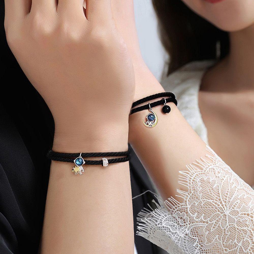 1 cái vòng tay Cặp đôi Vòng tay Dây đeo tay Thiên văn Người không gian Tình yêu Quà tặng Ngày lễ tình nhân Đồng Phim hoạt hình thời trang