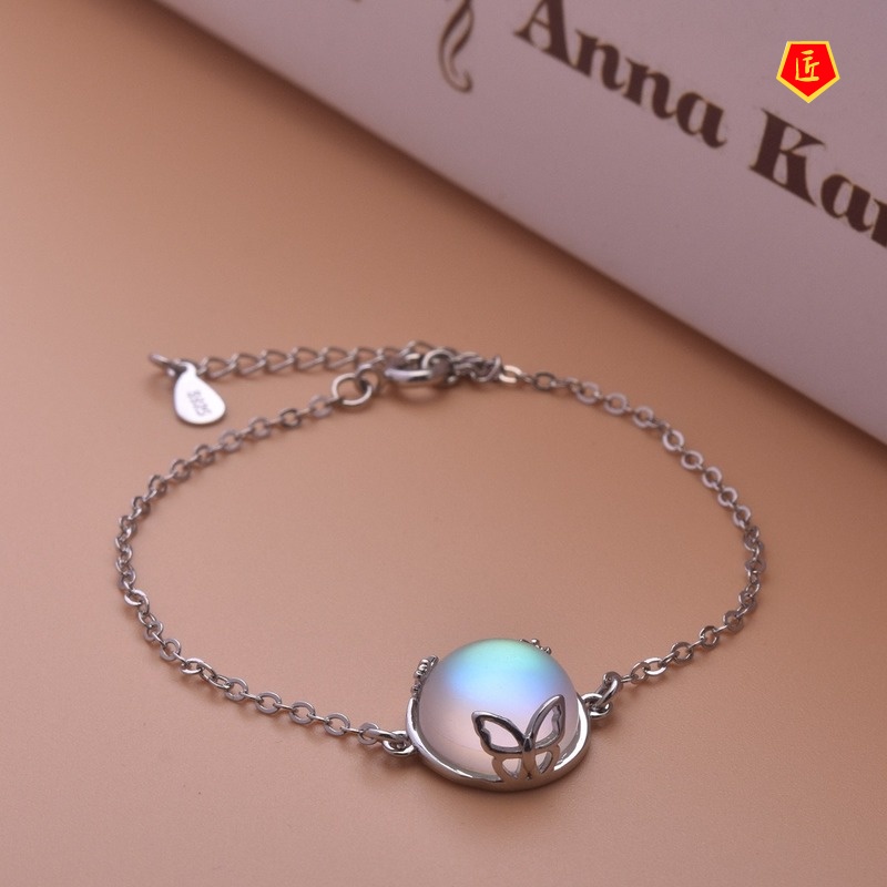 Giới thiệu Vòng Tay Mạ Bạc 925 Đính Đá Mặt Trăng Hình Bướm Đơn Giản Xinh Xắn