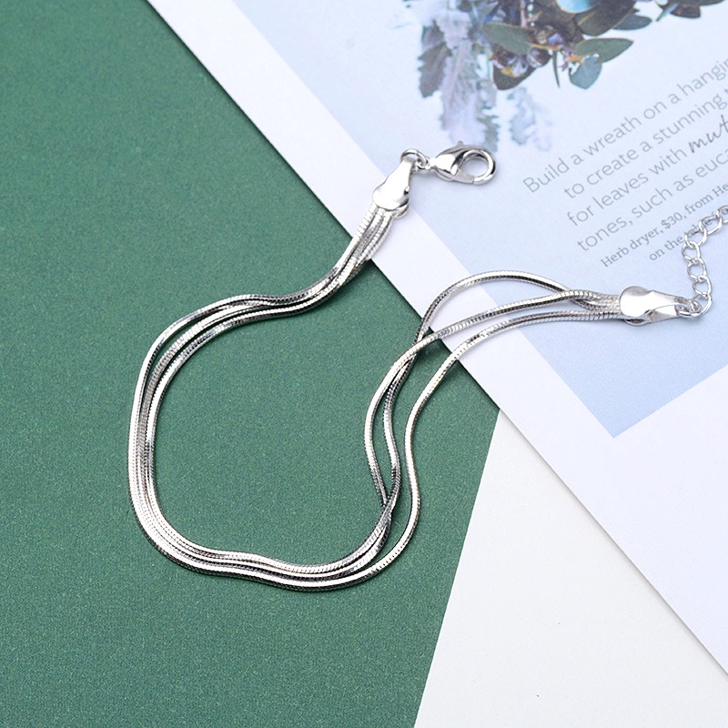 Giới thiệu Vòng Tay Nhiều Lớp Dạng Chuỗi Rắn Màu Bạc Đơn Giản Có Thể Điều Chỉnh Cho Nữ