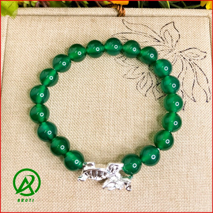 Giới thiệu Vòng Tay Phong Thủy Mệnh Mộc - Vòng Tay Mã Não Xanh Lá 8mm Mix Long Quy Bạc Độc Lạ V381-8