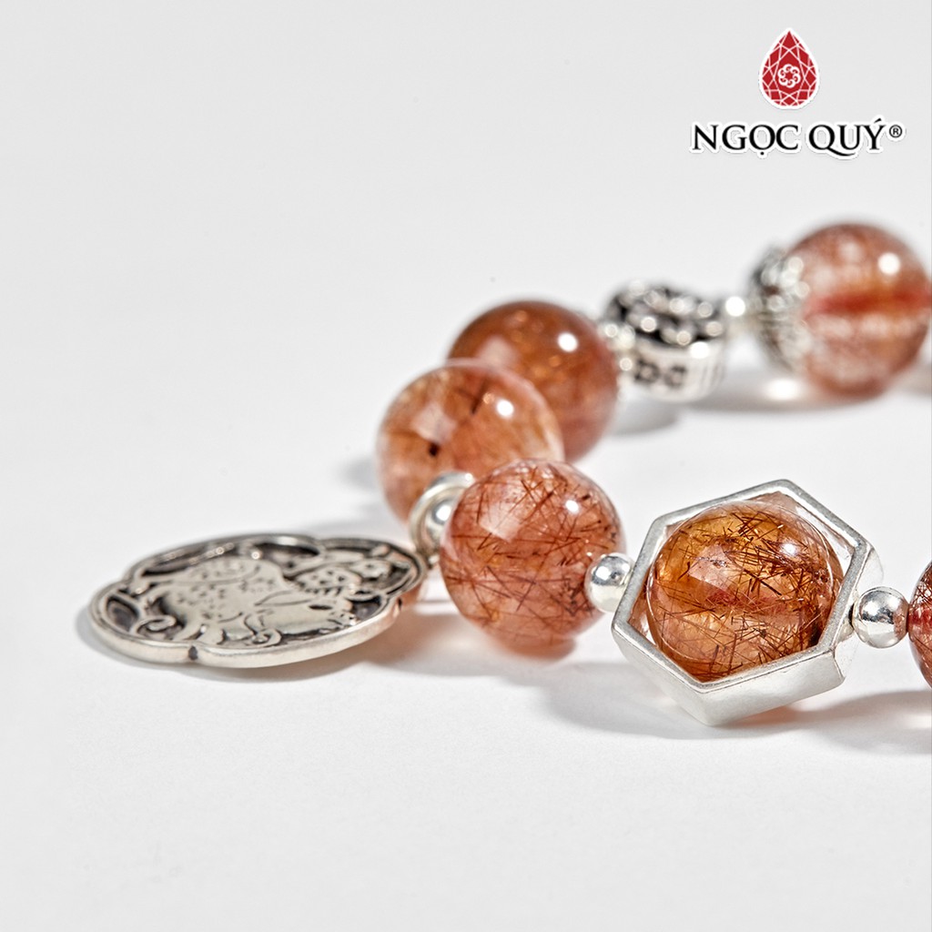 Giới thiệu Vòng tay TA tóc đỏ phối charm heo bạc hạt 10mm - Ngọc Quý