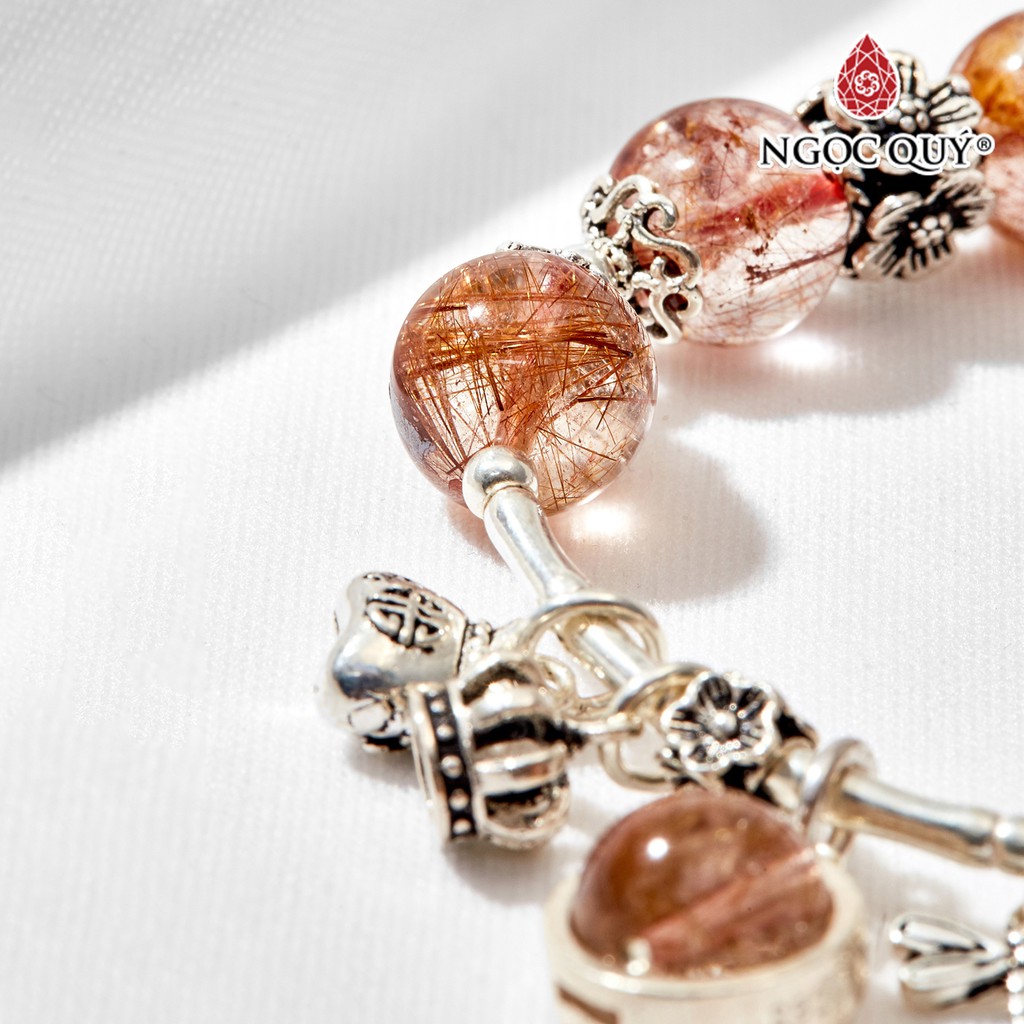 Vòng tay TA tóc đỏ phối charm hoa sen - Ngọc Quý