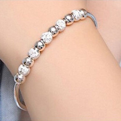 Type: Bracelet Style: Bangle Colour: Silver Material: Silver Plated Copper Features: Open Hand Cuff Adjustable Bangle, 9 Rotatable Beads Means Good Fortune Occasion: Party, Birthday Present, Christmas Gift, Daily Wear Diameter(Adjustable): 5 - 6cm/ 1.96" - 2.36" (Approx.)