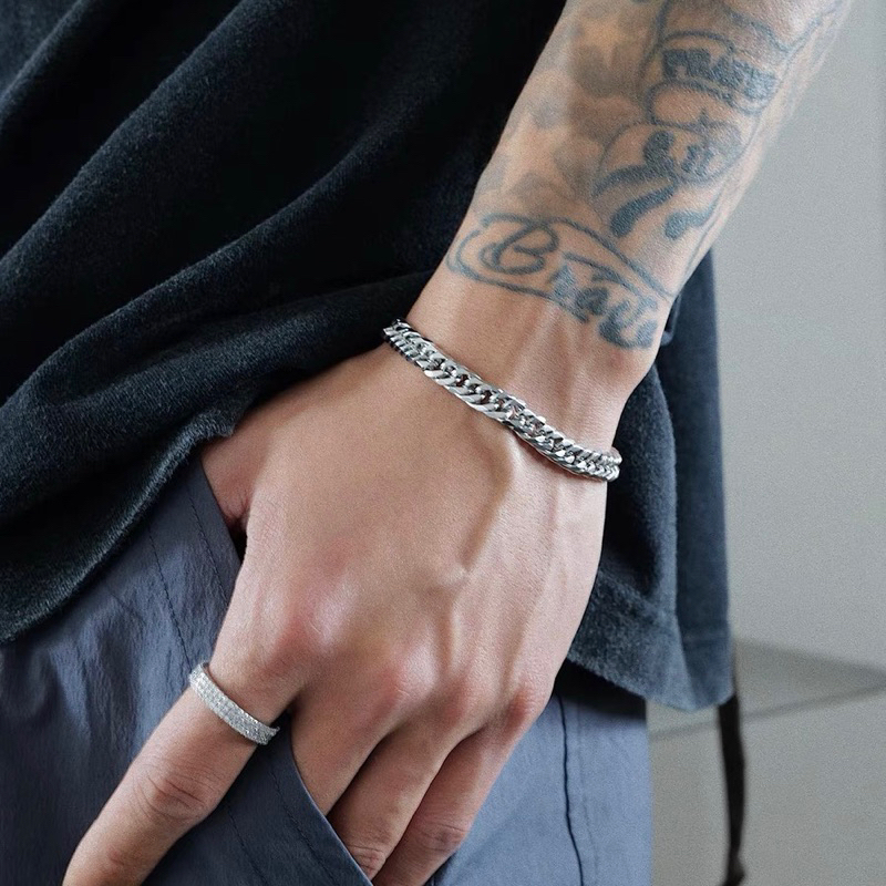 Giới thiệu Vòng tay xích liền vát cạnh kiểu dáng unisex thép titan không gỉ