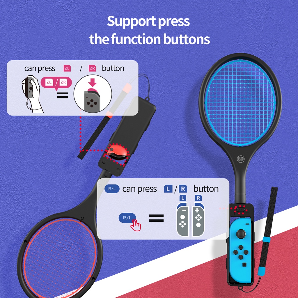 🎈1. 1 set 2 vợt, 1 màu đỏ và 1 màu xanh dương. 🎈2. Cho cảm giác thoải mái, trọng lượng vừa phải. 🎈3. Hỗ trợ chơi thể thao NS, có thể nhấn nút chức năng.
