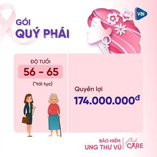 TOÀN QUỐC [E-Voucher]- Bảo hiểm ung thư vú Bảo Hiểm VietinBank VBI gói Nữ Tính (56 -65 tuổi dành cho tái tục)