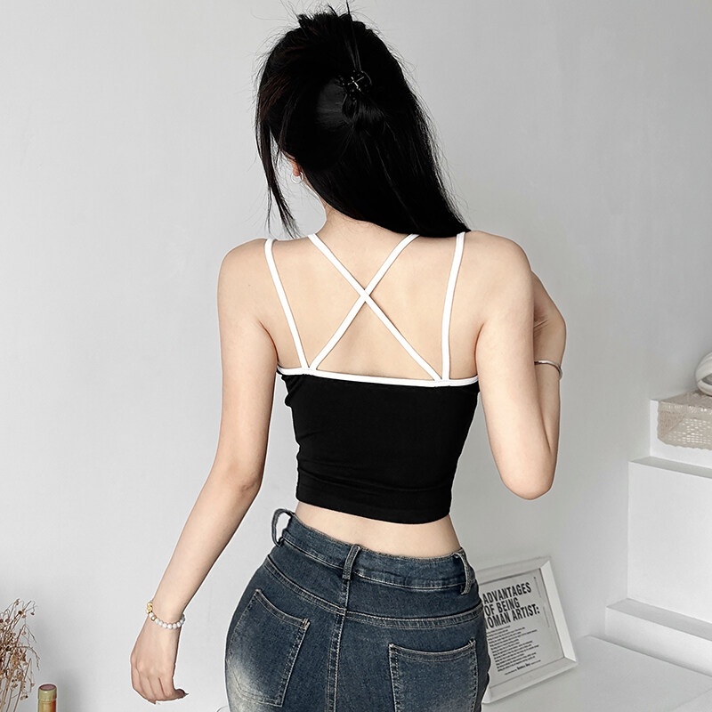 Giới thiệu Weird Puss Áo Hai Dây Mềm Co Giãn Ôm Dáng Màu Đen Trơn Đơn Giản Thời Trang Mùa Hè Cho Nữ