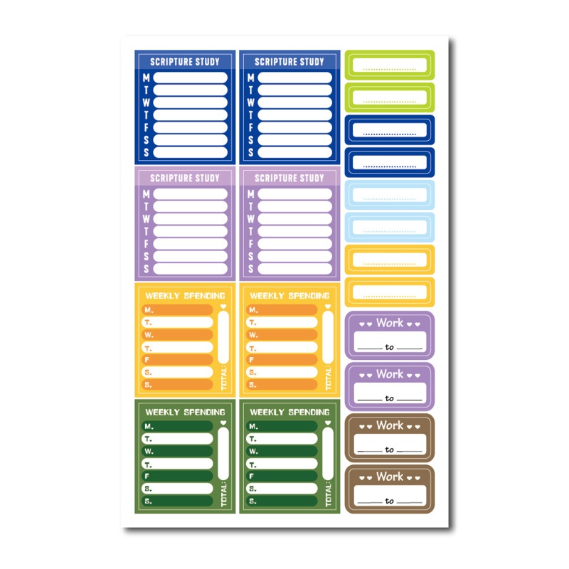Thông số kỹ thuật: Chất liệu: Giấy tráng Kích thước: Xấp xỉ. 120x180 mm / 4,72x7,08 inch Loại: Dán hình trái tim, Dán sóng, Dán chấm, Để dán, Dán tuần, Miếng dán Notepad, Miếng dán số, Dán dấu chấm