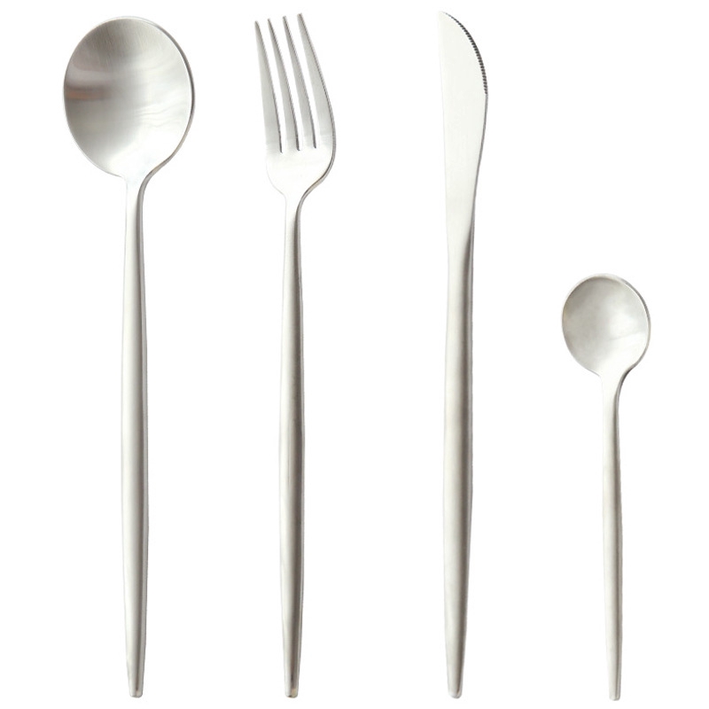 Pattern: plain Product category: Knife and fork Color: silver main dinner spoon, silver main dinner fork, silver main dinner knife, silver dessert spoon, silver dessert fork, silver dessert knife, silver coffee spoon, silver fruit fork, silver butter knife, silver chopsticks, table knife + meal Fork + box, table knife + table fork + table spoon + coffee spoon + box Polishing process: spike lamp Material: stainless steel Applicable object: Adults Item No: Silver knife, fork and spoon Stainless steel material: 304 . stainless steel Product quality grade: first-class product Style: Western Main sales regions: Africa, Europe, South America, Southeast Asia, North America, Northeast Asia, Middle East