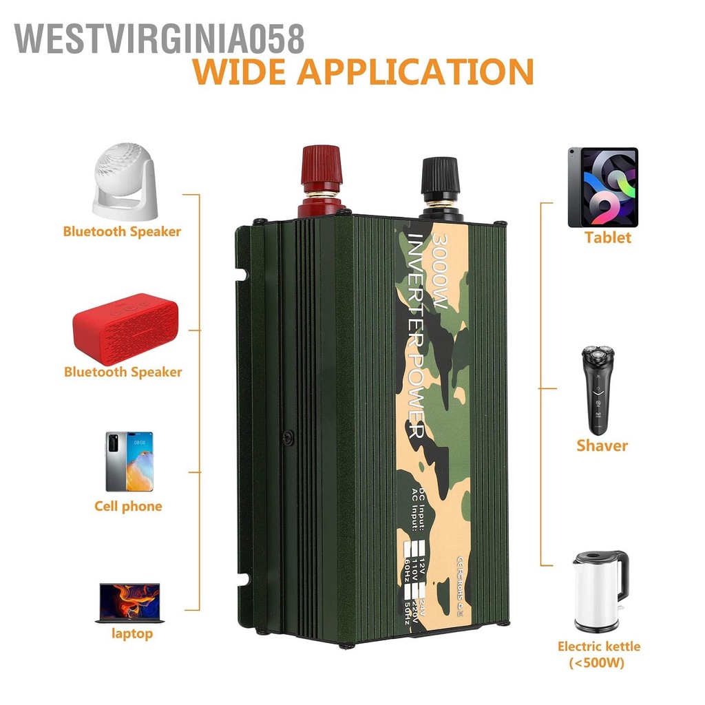 Dụng cụ và thiết bị tiện ích > Thiết bị và phụ kiện xây dựng > Giấy nhám, máy chà nhám và phụ kiện > Westvirginia058 Bộ biến tần năng lượng mặt trời 3000W DC 24V sang AC chuyển đổi bằng sóng hình sin với ổ cắm USB