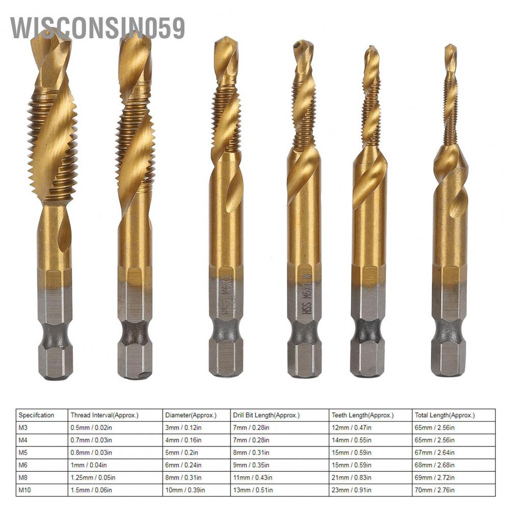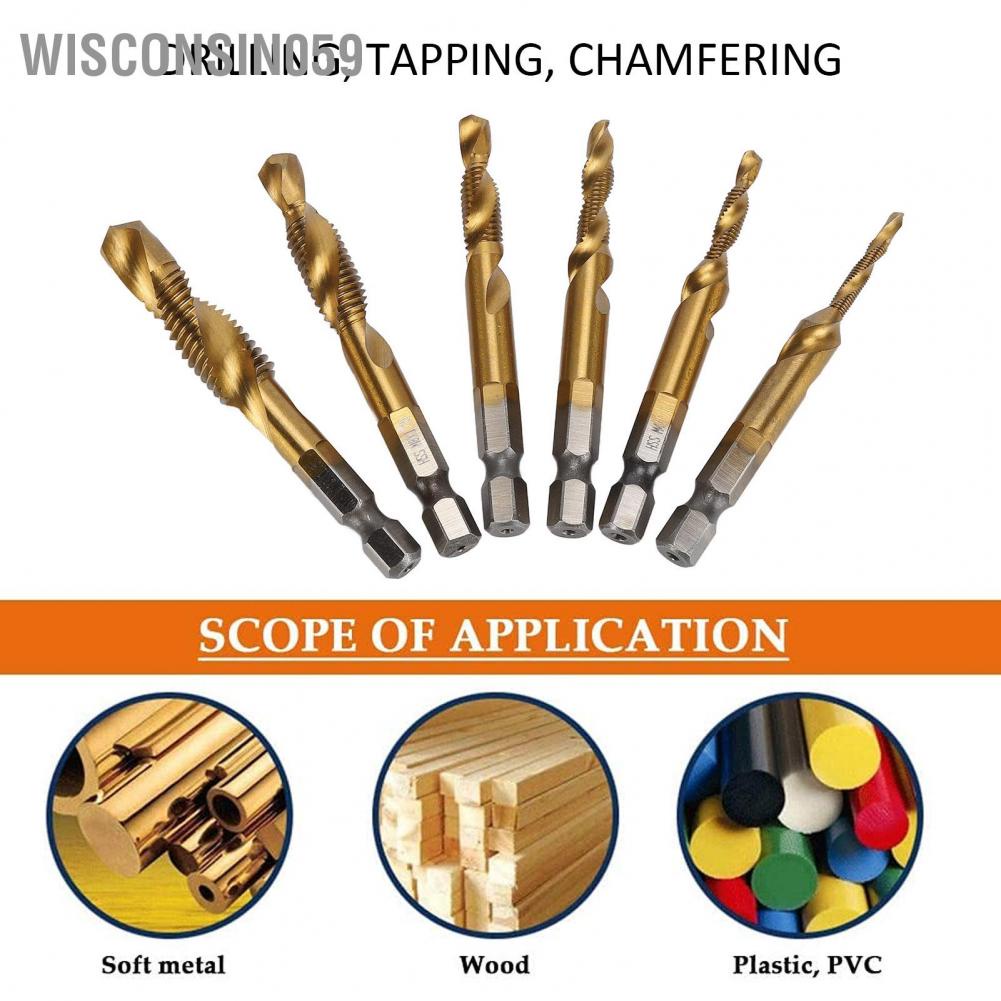 Dụng cụ và thiết bị tiện ích > Dụng cụ cầm tay > Dụng cụ cầm tay khác > Wisconsin059 6Pcs Drill Tap 1/4in Hex Shank Spiral Bit Set Kit for Drilling Tapping Chamfering