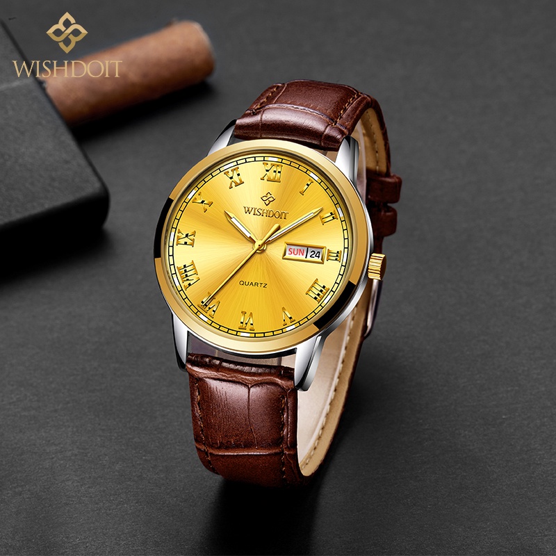 Giới thiệu WISHDOIT Đồng hồ đeo tay dây đeo da phong cách doanh nhân chính hãng thời trang dành cho nam