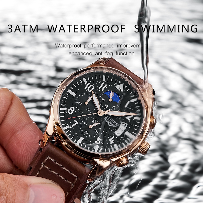 Brand: WISHDOIT (official original) Chuyển động: Bộ chuyển động thạch anh Chất liệu vỏ: Thép không gỉ Dây đồng hồ: Leather strap Chống nước: Chống nước 30-50 mét, có thể bơi lội) Gương đồng hồ: Kính cường lực khoáng cứng cáp Đường kính đồng hồ: 43mm Khối lượng đồng hồ: 82g Độ dày đồng hồ: 12mm Chiều dài đồng hồ: 24cm Chiều rộng dây đeo đồng hồ: 22mm