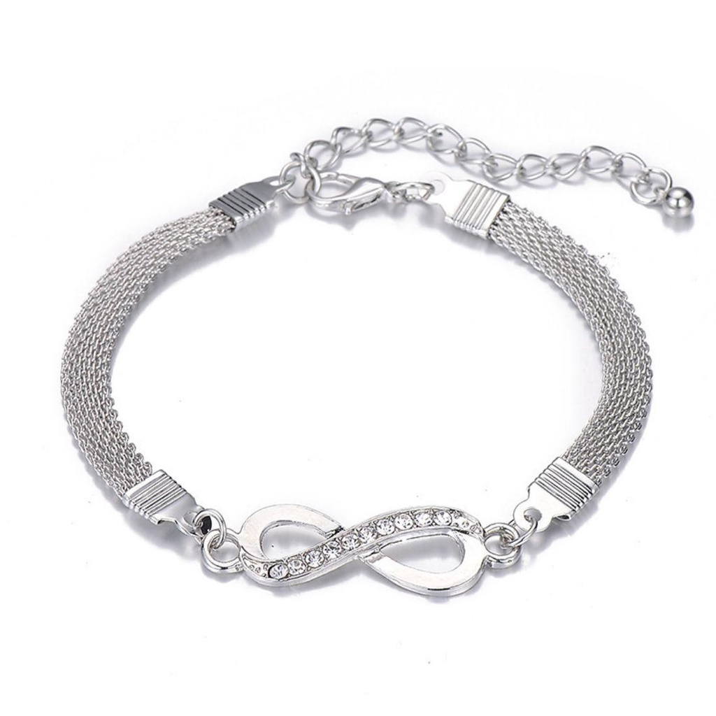 Kỹ thuật đánh bóng tinh tế của vòng tay mạ vàng trắng được sử dụng ở đây , zirconia khối sáng bóng được khảm trên biểu tượng vô cực . Tên " Vòng tay vô cực