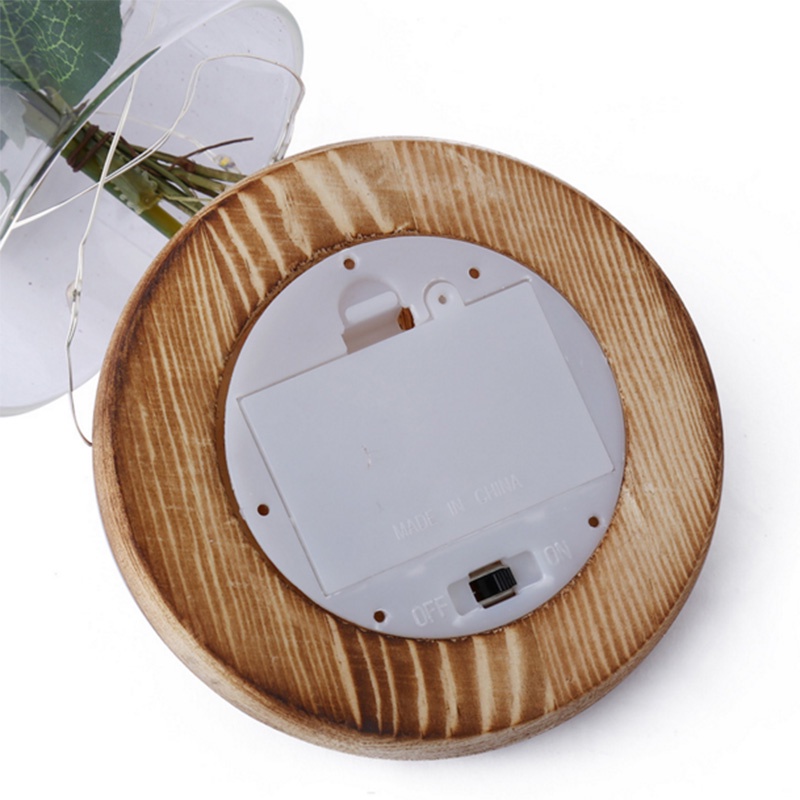 Thông tin sản phẩm: Trọng lượng sản phẩm: 312g (có bao bì), 235g (trọng lượng tịnh) Kích thước sản phẩm: chiều cao đường kính cơ sở 19 * 10cm Kích thước đóng gói: 24,8cm * 13,2cm Chế độ cung cấp điện: sử dụng 3 pin AA, được bán không có pin Thông tin bao bì: Sản phẩm là hoa mô phỏng, nắp được làm bằng thủy tinh, đế làm bằng gỗ, bao bì bọc hoàn toàn bằng xốp, bao bì bên ngoài có thùng carton, bạn có thể nhìn thấy Hình ảnh để biết chi tiết