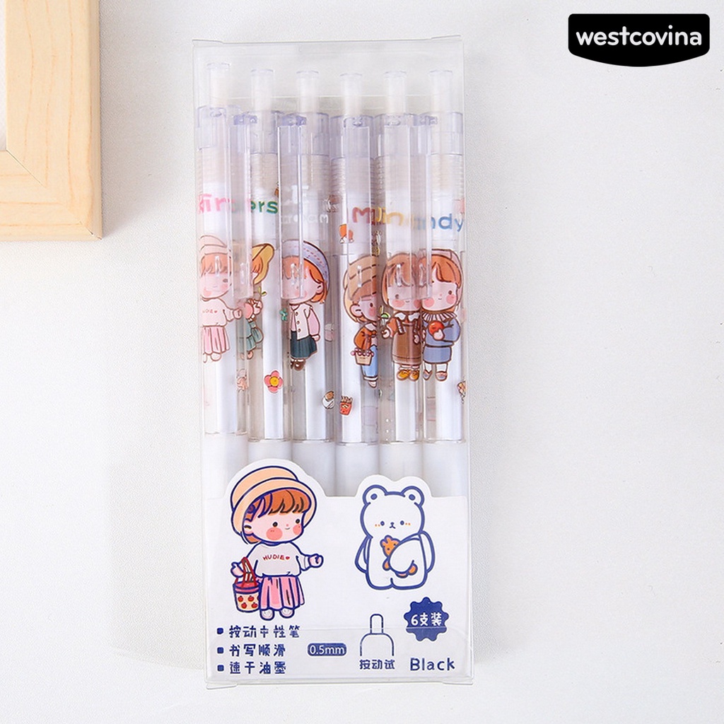 [WSTN]✎Set 6 Bút Mực Gel Ngòi 0.5mm Nhanh Khô Chống Trượt Họa Tiết Hoạt Hình