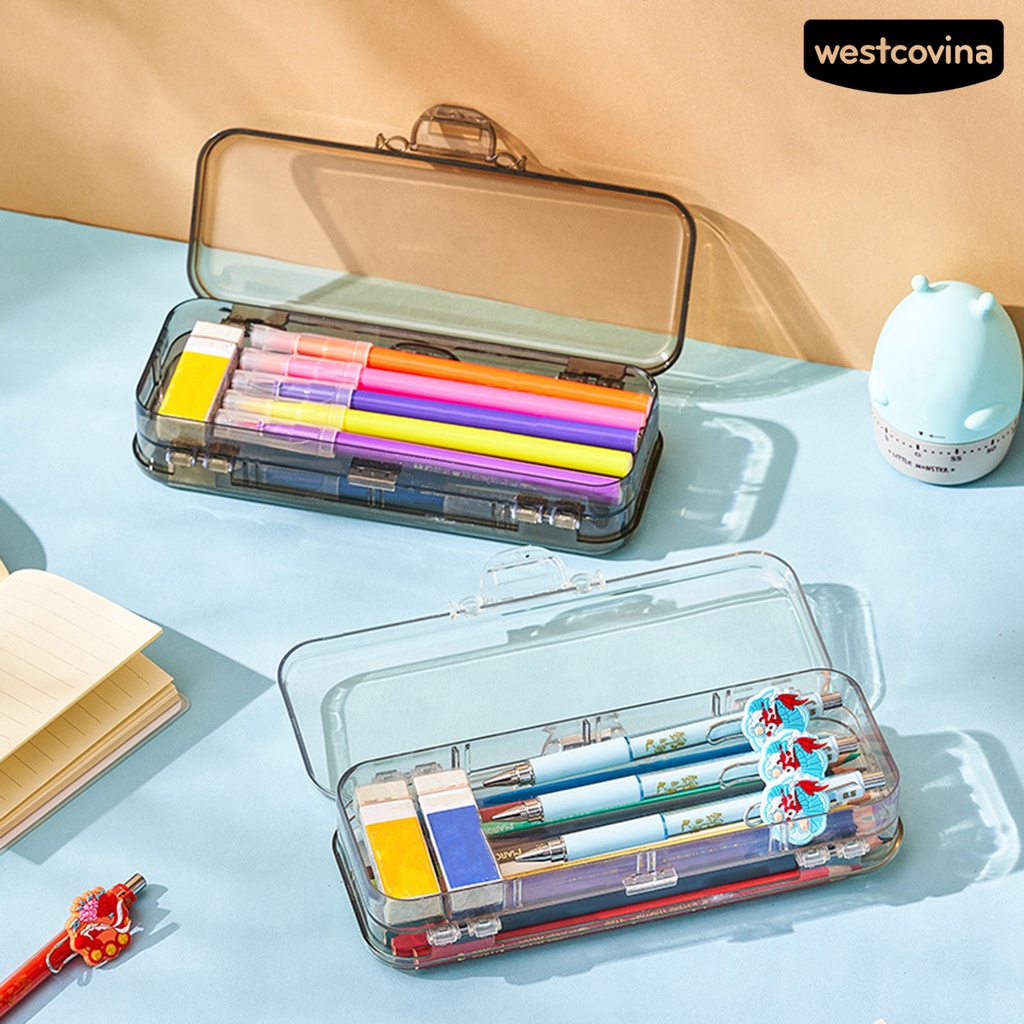 [WSTN] [WSTN]✎Hộp Đựng Bút Hai Lớp Trong Suốt Cỡ Lớn Đa Năng Tiện Dụng Cho Học Sinh