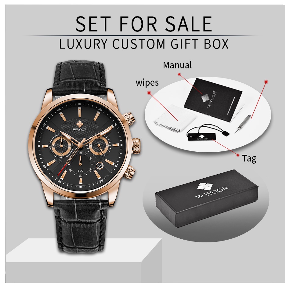 Giới thiệu WWOOR Đồng Hồ Thể Thao Chống Thấm Nước Dây Da Sang Trọng Kèm Hộp Đựng Relogio Masculino-8845