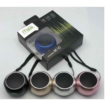Loa Bluetooth MiNi M10 - Bao ngày chông ngóng em ý cũng đã về, vì quá hot, quá chất, quá mi nhon . Xứng với cái tên " nhỏ nhưng có võ" - Tín đồ công nghệ, yêu thích sự tinh tế, tiện lợi , nhỏ gọn mà chất lượng thì đừng bỏ qua em này ko phí lắm lắm ý ạ - Cam kết : Hàng chuẩn L1 - Hỗ trợ kết nối không dây Bluetooth 4.0 - Âm trầm tốt , Bass sâu và mềm nhưng ko loãng. Âm thanh trung thực - Trọng lượng :280gr - 4 màu : đen, vàng, hồng, trắng - 1 hộp gồm: 1 loa mini + 1 dây đeo loa + 1 dây sạc Loa Bluetooth MiNi M10 THÔNG TIN CHI TIẾT SẢN PHẨM LOA BLUETOOTH MINI - Sử dụng: Portable Audio Player, Điện thoại di động - Loại loa: Loa siêu trầm, loa bluetooth, loa mini - Chức năng phát lại: MP3 - Chất liệu: Kim loại - Màu sắc: đen, bạc, hồng, vàng, xanh - Âm lượng: >90dB - Dung lượng Pin: 1000mAh - Công suất: 3W - Tần số: 2.402-2.480 GHz - Tính năng đặc biệt: Không dây, Xách tay, Mini - Radio: Không - Kênh: 2 (2.0) - Cung cấp điện: được xây dựng trong pin lithium - Kích thước: 30*30*20mm - Khoảng cách Bluetooth: 10m (LOA BLUETOOTH MINI )