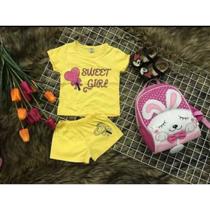 Bộ bé gái size từ 1-7 tuổi, bộ gấu size 3-4t, bộ sweet girl size 1-7t, cho bé từ 6-23kg. Chất cotton mát.