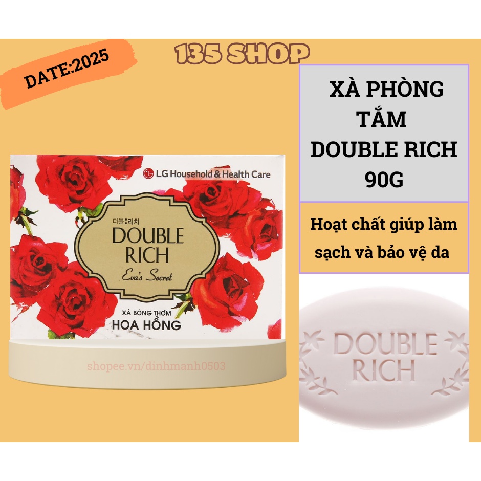 ☑️ THÔNG TIN SẢN PHẨM • Thương hiệu: Double Rich (Hàn Quốc) • Công dụng: Nhẹ nhàng làm sạch cho làn da mịn màng, dưỡng ẩm mềm mại, mùi hương thơm lâu quyến rũ • Mùi hương: Hoa hồng, Hương Lily, Hương Iris • Khối lượng:90g • Sản xuất tại: Việt Nam