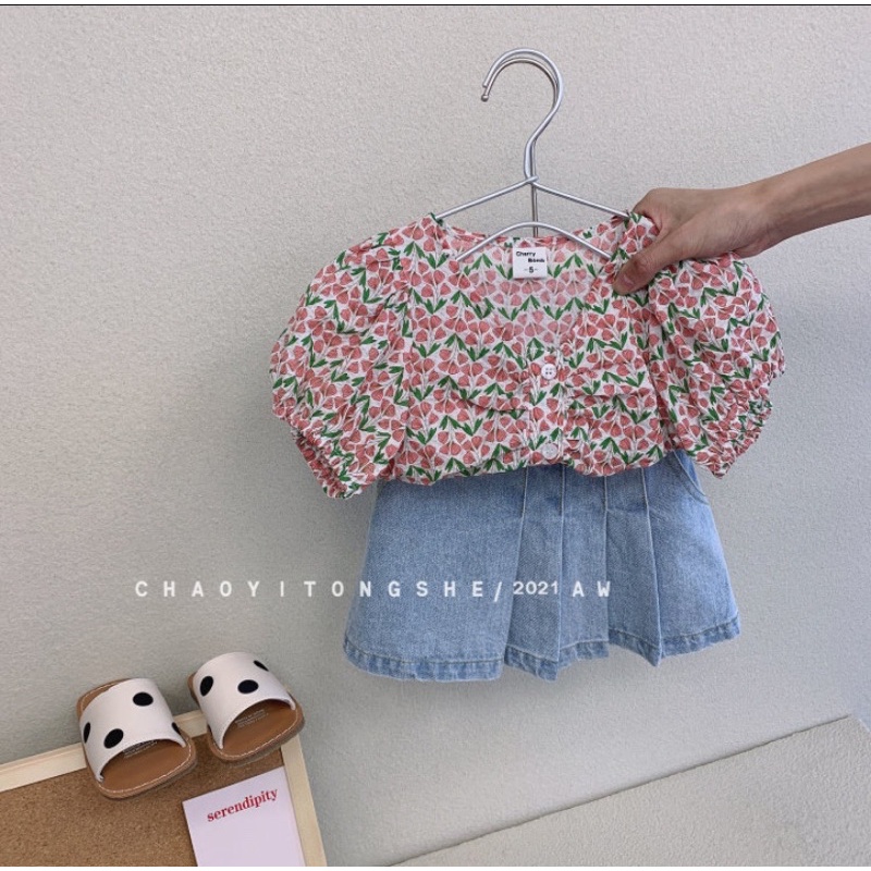 Giới thiệu Xả Set áo thô hoa nhí cv jean kèm quần trong