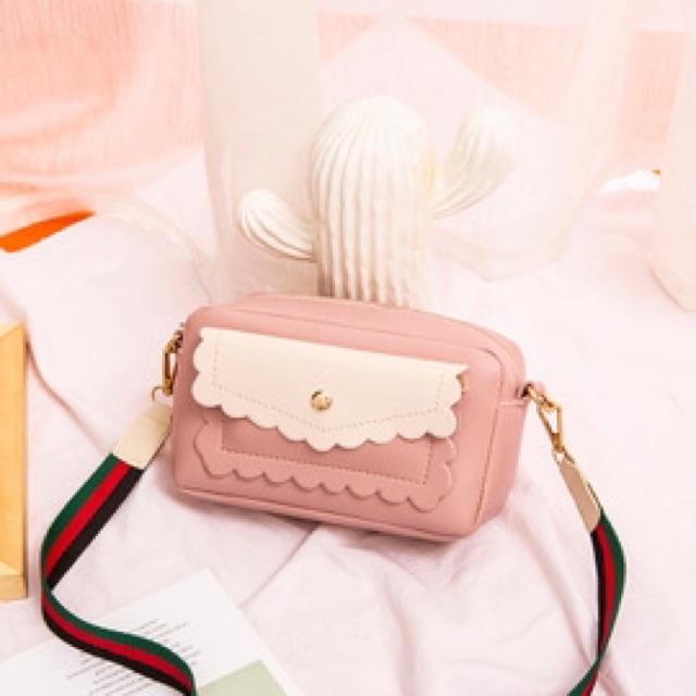 [XẢ] Túi da đeo chéo viền bèo tiểu thư