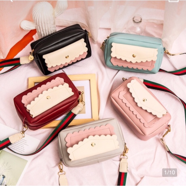 Giới thiệu [XẢ] Túi da đeo chéo viền bèo tiểu thư