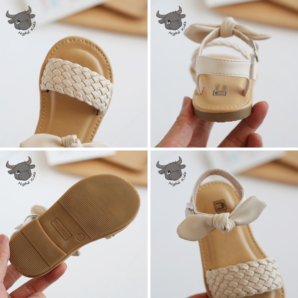 Giới thiệu Xăng đan quai ngang da PU đan mềm kèm nơ xinh cho bé gái M732