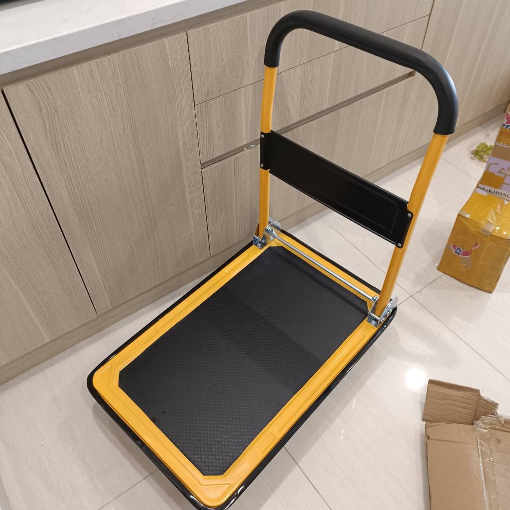 🔴 THÔNG TIN SẢN PHẨM:Xe Đẩy Hàng Thép Nhập Khẩu Siêu Tải Trọng 300kg Gấp Gọn Tiện Lợi ➡ Sản xuất theo công nghệ Thái Lan giúp tối ưu được tải trọng và độ bền của sản phẩm ➡ Mặt sàn xe làm bằng chất liệu thép cao cấp siêu bền, chịu lực chịu nhiệt tốt trong nhiều môi trường khác nhau. ➡ Sàn rộng, được thiết kế vân sần chống trượt gíup chở được đa dạng các hàng hóa. ➡ Trọng lượng xe khoảng 10kg có thể linh động xếp gập lại giúp tiết kiệm không gian khi cất giữ, dễ dàng đem theo xe tải , ô tô, xe máy . ➡ Tay cầm của xe đẩy gấp gọn được bọc xốp mút tạo cảm giác êm ái dễ chịu vượt trội hơn các dòng xe đẩy khác. ➡ Bánh xe được làm từ PU thế hệ mới chống mài mòn thấp phù hợp với các địa hình phức tạp ➡ Đặc biệt, bánh xe được thiết kế vòng bi (bạc đạn) phù hợp cả những công trường , nhà xưởng địa hình gồ ghề mà vẫn êm ái, không gây ra tiếng ồn. ➡ Tiết kiệm thời gian vận chuyển hàng hóa. ➡ Tiết kiệm nhân công, máy móc, giảm chi phí cho kho xưởng. ➡ Chất, chở được nhiều hàng hóa cùng một lúc. ➡ Hỗ trợ vận chuyển hàng hóa ra vào hẻm nhỏ hoặc quãng đường xa. ( lắp đặt dễ dàng )