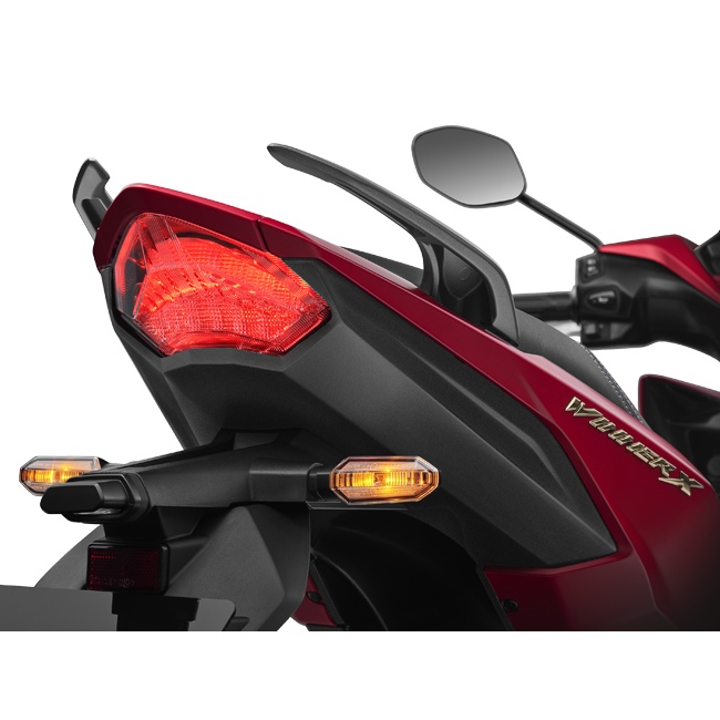 ----------------------------------------------- Thông số kỹ thuật : Honda Winner X Khối lượng bản thân 122kg Dài x Rộng x Cao 2.019 x 727 x 1.104 mm Khoảng cách trục bánh xe 1.278 mm Độ cao yên 795 mm Khoảng sáng gầm xe 151 mm Dung tích bình xăng 4,5 lít Kích cỡ lớp trước/ sau "Trước: 90/80-17M/C 46P Sau: 120/70-17M/C 58P" Phuộc trước Ống lồng, giảm chấn thủy lực Phuộc sau Lò xo trụ đơn Loại động cơ PGM-FI, 4 kỳ, DOHC, xy-lanh đơn, côn 6 số, làm mát bằng dung dịch Công suất tối đa 11,5kW/9.000 vòng/phút Dung tích nhớt máy "1,1 lít khi thay nhớt 1,3 lít khi rã máy" Mức tiêu thụ nhiên liệu 1,99l/100km Loại truyền động Cơ khí Hệ thống khởi động Điện Moment cực đại Điện Dung tích xy-lanh 149,1 cm3 Đường kính x Hành trình pít tông 57,3 mm x 57,8 mm Tỷ số nén 11,3:1