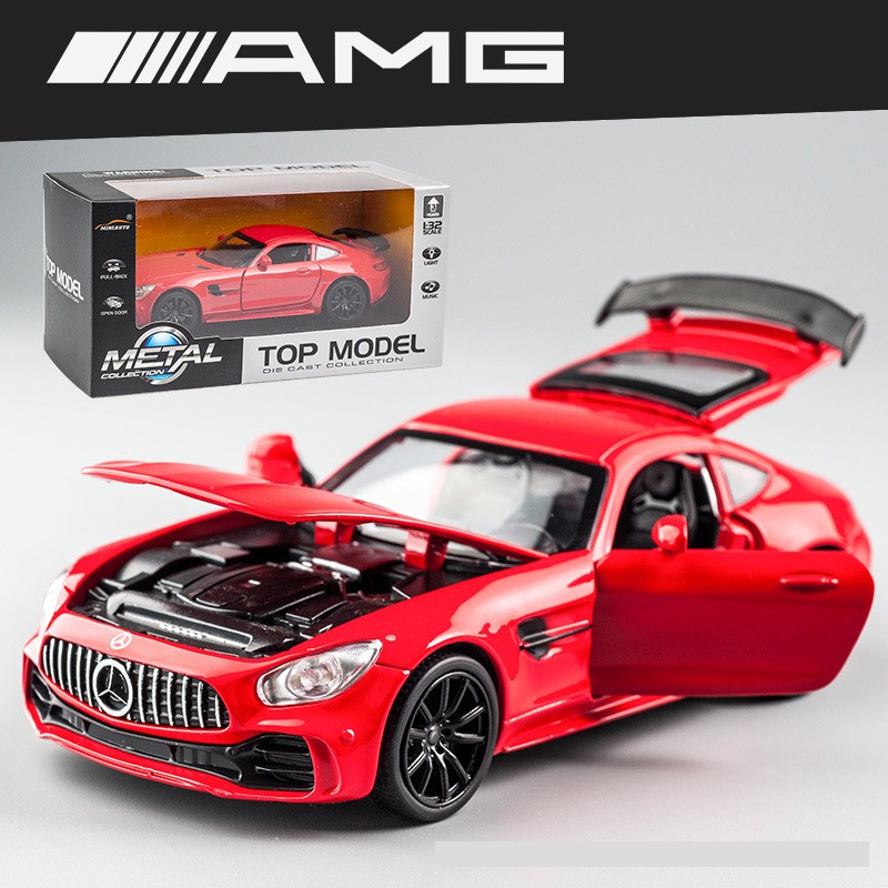Giới thiệu Xe mô hình Mercedes AMG GTR tỉ lệ 1:32 hãng Miniauto khung kim loại, có đế trưng bày sang chảnh