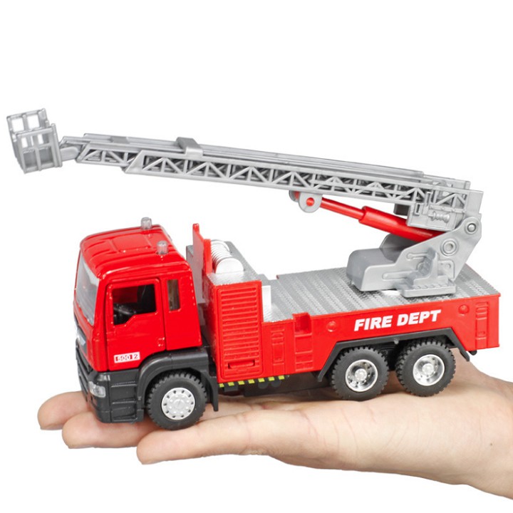 Giới thiệu Xe mô hình ô tô cứu hỏa có thang rút tỉ lệ 1:50 đầu xe bằng sắt xe chạy cót có âm thanh và đèn