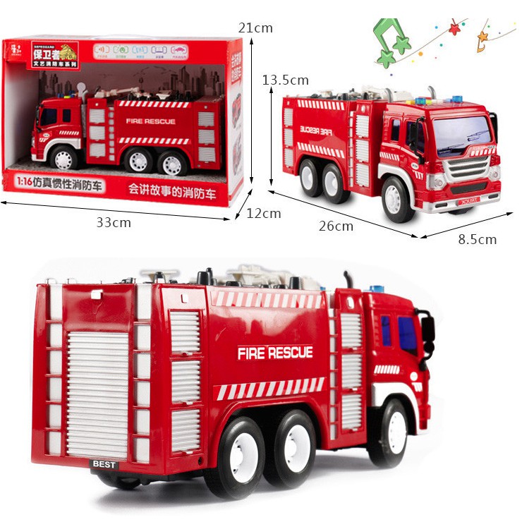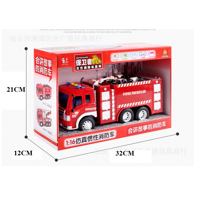 Giới thiệu Đồ chơi xe ô tô cứu hỏa mô hình vòi phun tỉ lệ 1:16 xe chạy đà có âm thanh và đèn