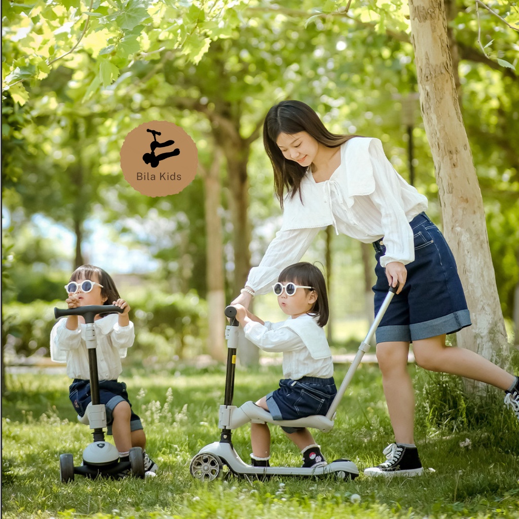 Giới thiệu Xe scooter chòi chân cho bé BILA KIDS từ 1-14 tuổi, có ghế, tay đẩy, tải trọng 100kg Siêu bền, scoot and ride
