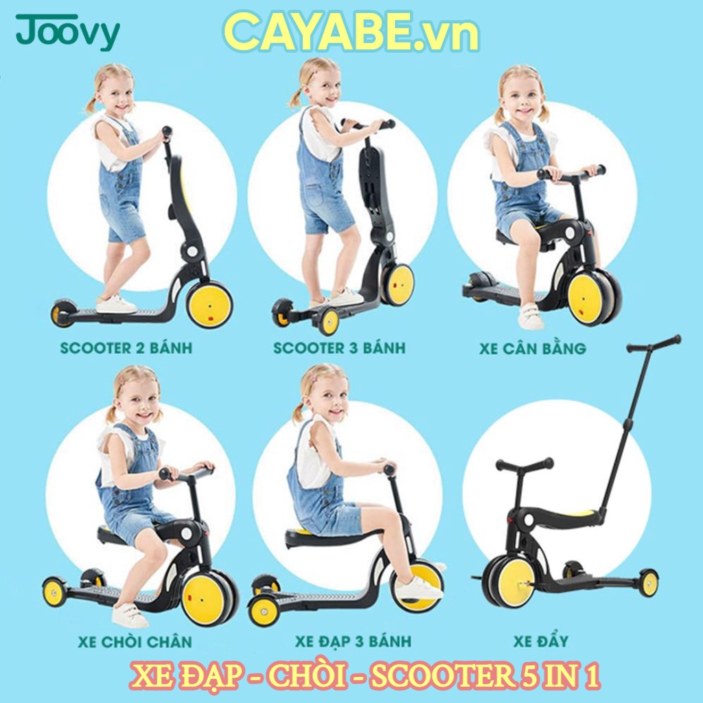 * Dễ dàng chuyển đổi giữa 5 chế độ: + Xe đạp 3 bánh + Scooter 2 bánh + Scooter 3 bánh + Xe cân bằng + Xe chòi chân