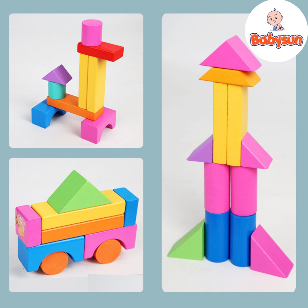 CÔNG DỤNG: - Khoảng 2 tuổi là lúc não bé vừa hoàn thiện nên có ấn ượng rất mạnh đối với màu sắc và rất tò mò về thế giới xung quanh. Các khối gỗ có màu sắc tươi sáng hấp dẫn đối với trẻ, trên các khối gỗ in hình minh họa giúp bé học tập về thế giới bên ngoài, các kiến thức thường thức, sớm tiếp xúc với toán học - Việc di chuyển và xếp các khối gỗ giúp trẻ rèn luyện cơ thể, bồi dưỡng tư duy logic và sức sáng tạo, khả năng phối hợp tay mắt giúp bé khỏe mạnh và thông minh hơn. - Từ những chi tiết miếng ghép gỗ, bé yêu sẽ được thỏa sức sáng tạo để ghép thành những kiểu mô hình dễ thương, sinh động như bông hoa, ngôi nhà, ô-tô, máy bay...