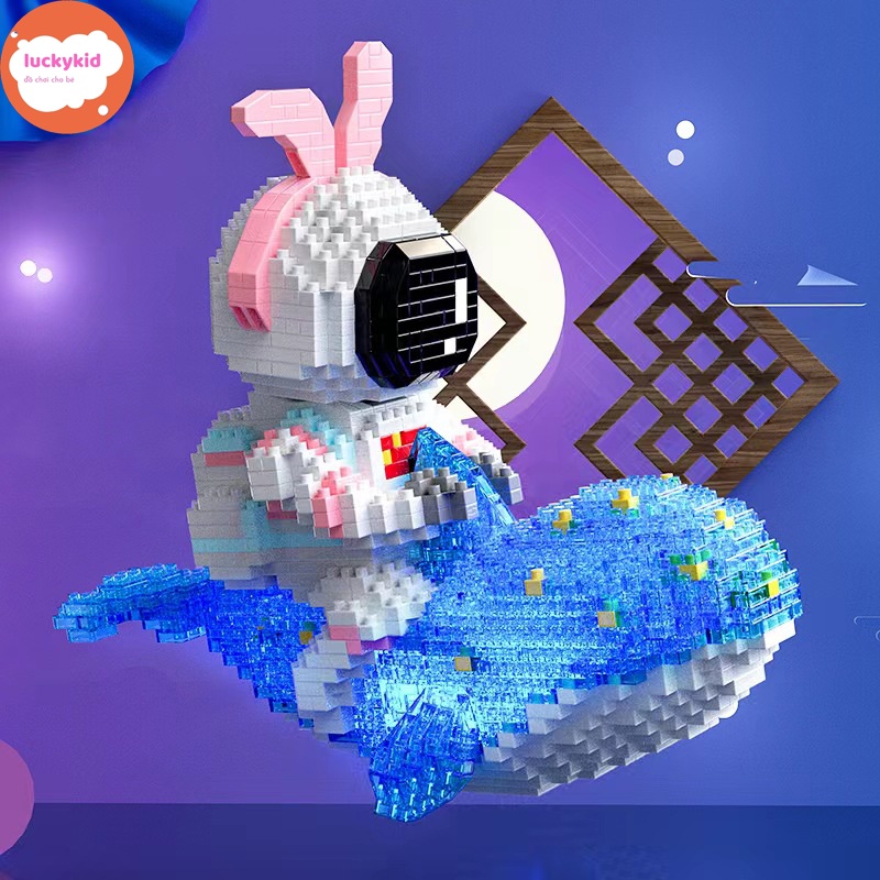 Xếp hình lắp ráp lắp ghép mô hình phi hành gia cưỡi cá voi có đèn phát sáng cho bé trai bé gái - Luckykid