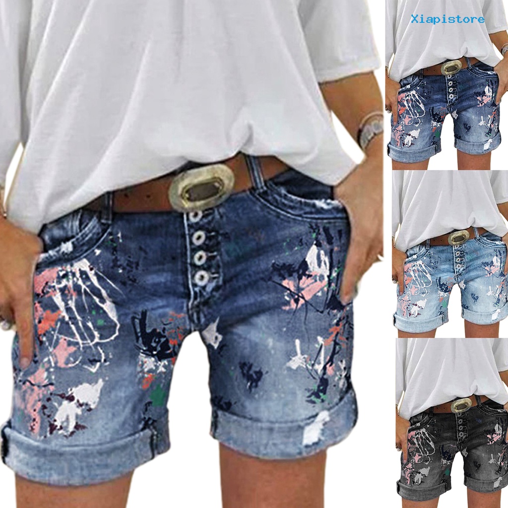 Giới thiệu [XI] Quần Short Jean Ngắn In Nhiều Hàng Nút Gấp Được Dễ Phối Đồ Cho Nữ