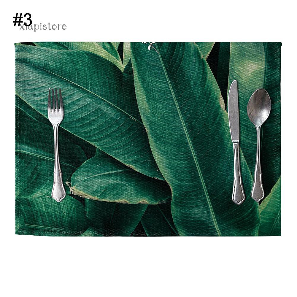 XIAPISTORE ❤Green Plant Linen Placemat Dining Table Heat Insulation Mat Home Kitchen Decor