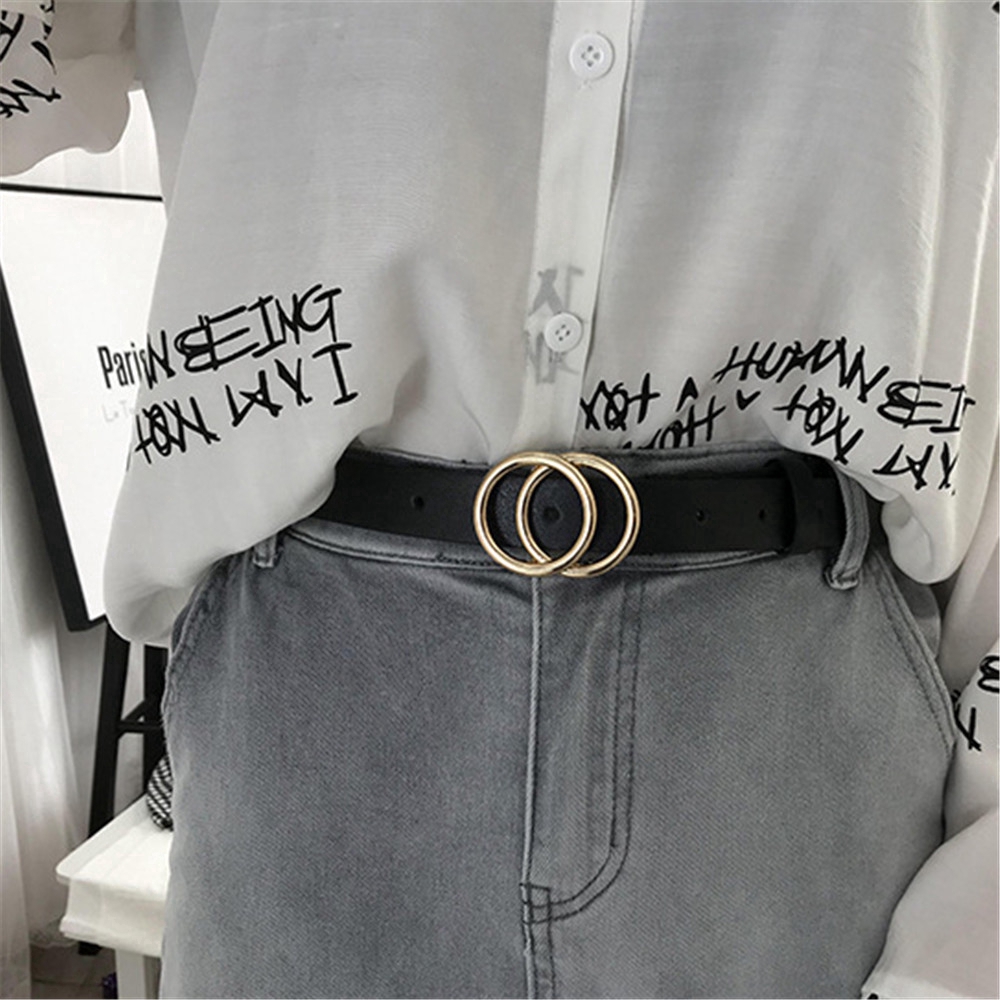 Giới thiệu XIJING-COD Korean Fashion Woman Metal Double Ring Leather Belt INS Girls Jeans Belt 105cm