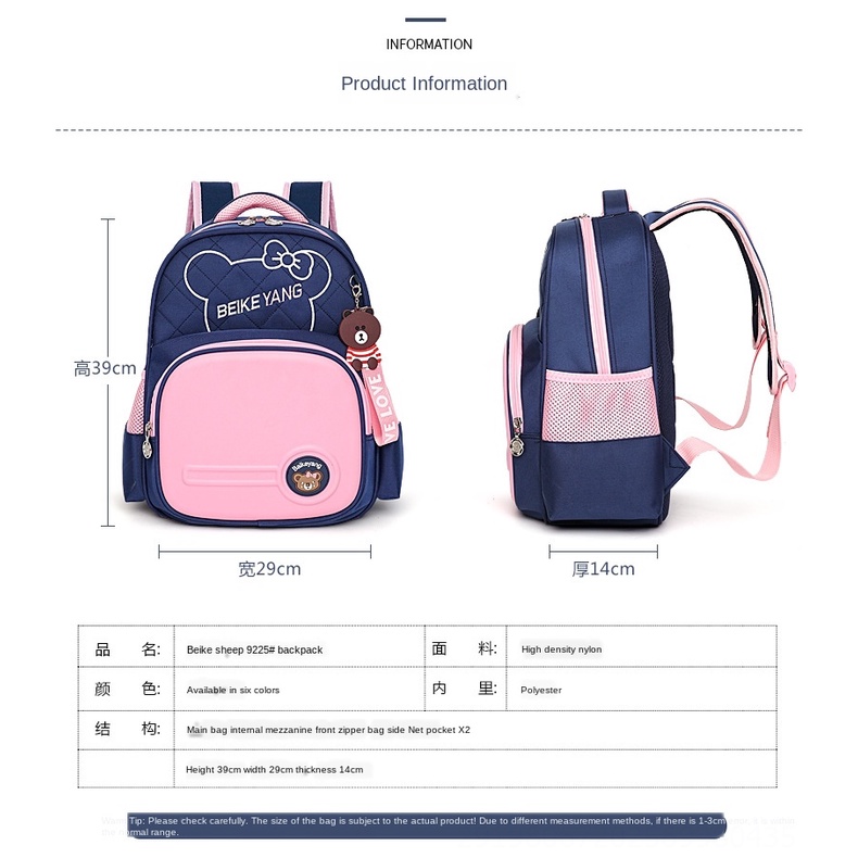 Balo cho học sinh dòng cao cấp BEIKE-YANG có kèm móc khóa gấu - Balo học sinh tiểu học dòng cao cấp hình chú gấu kèm móc khóa dễ thương - Kích thước : cao 39cm x dài 29cm x rộng 14 cm phù hợp học sinh lớp 1 tới 3 do may thủ công nên có thể sai số từ 1-3cm - Balo chống gù lưng siêu nhẹ - Chất liệu chống thấm nước , siêu nhẹ - Đệm lưng êm ái, thoáng khí, - quai đeo có lớp mút êm ái chống thấm mồ hôi - màu sắc 05 màu : Xanh pha viền hồng, tím hồng, hồng đậm, hồng nhạt, xanh dương, navy - Kiểu dáng hiện đại, màu sắc pha màu cá tính. - Balo có 1 ngăn chính , 1 ngăn phụ , 2 ngăn lưới - thiết kế phong cách hàn quốc có kèm móc khóa gấu dễ thương - balo cao cấp phong cách #balotreem #balochobe #capsachhocsinh #balochonggu #balochotreem #balocap1 #caphocsinh #balohocsinh #caphocsinh #balochonggu #capchonggu #caphocsinhcaocap #capphatquang #cặp #cặphọcsinh #balotiểuhọc #balođihọc #balo #balochobe #balocap1 #balotreem #balobegai #balodep #balodihoc #balobupbe #balocongchua #balotieuhoc #balobegairedep #balodihocchobetrai #balodihocchobegai #balosale #balolop1 #baloredep #balocaocap #balotreem #balotreemloaitot #balophatquang #balo #balochonggu #captieuhoc